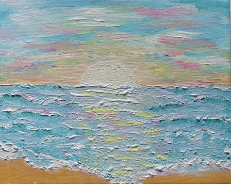 - ein glühend roter Ball sich allmählich aus dem MEER erhebt,